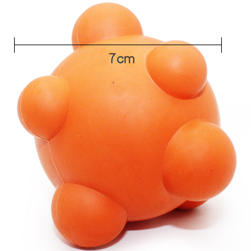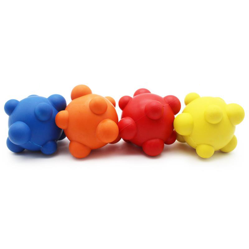 Su forma irregular (con bordes, aristas o formas que no son perfectamente esféricas) genera rebotes impredecibles cuando se lanza, lo que añade un componente de sorpresa y estimulación al perro al correr tras ella. Este tipo de rebote errático mantiene al perro alerta y activo, fomentando su agilidad y concentración en el juego.